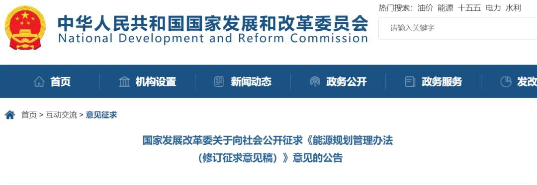 国家发展改革委关于向社会公开征求《能源规划管理办法(修订征求意见稿)》意见的公告